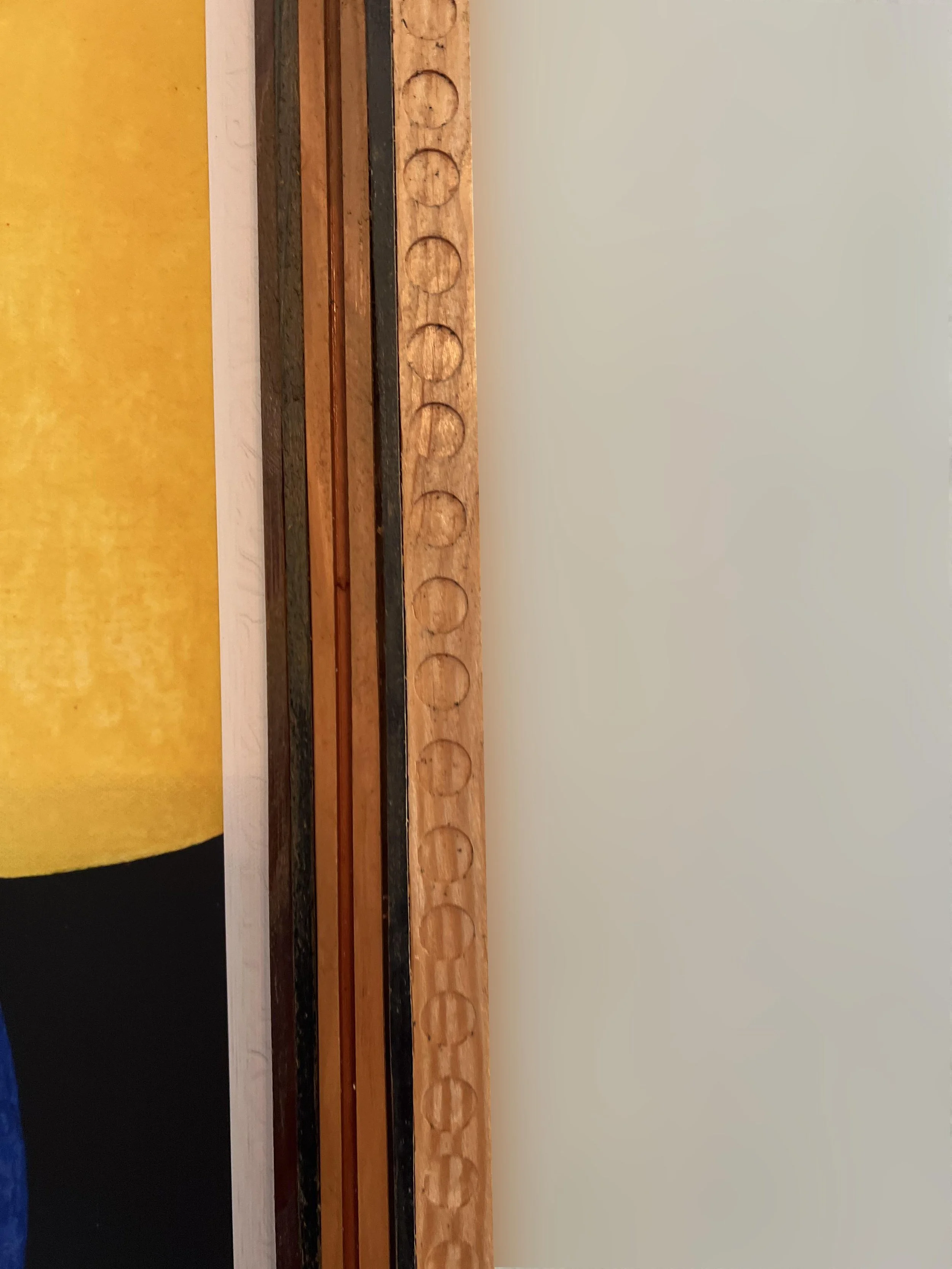 This painting by Joan Miró has been remastering and printing on premium, matte canvas. It’s then elegantly wrapped in a handcrafted carved wood inlay frame. This exclusive creation is made by Print & Frame Art Studio. Each frame comes with mounting for hanging and plastic bumpers. The size of the painting is 21×27 inches with frame.